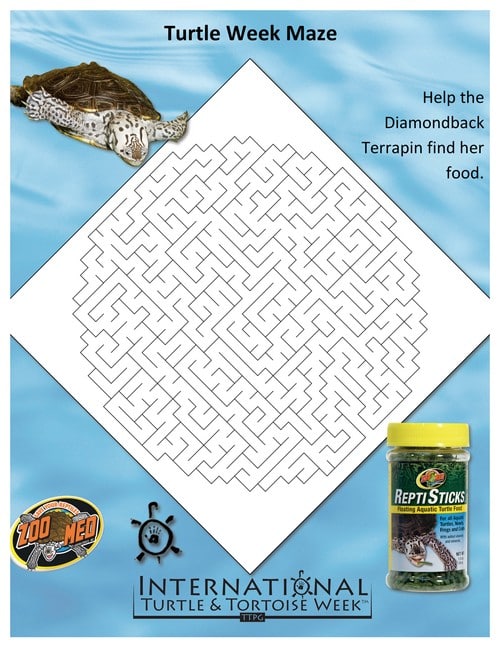 Kids can help the Diamondback Terrapin Turtle find her way to the yummy ReptiSticks. Make it more challenging and try it with pen to see if you can find it on your first try!