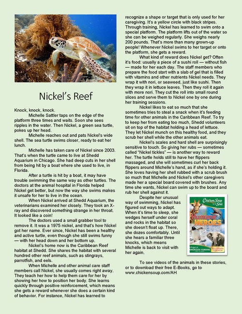A fantastic story about Nickel, a green sea turtle. Learn more about Nickel’s story by printing it out. Make sure to pay attention so that you can use your new found information to complete the accompaning worksheet.