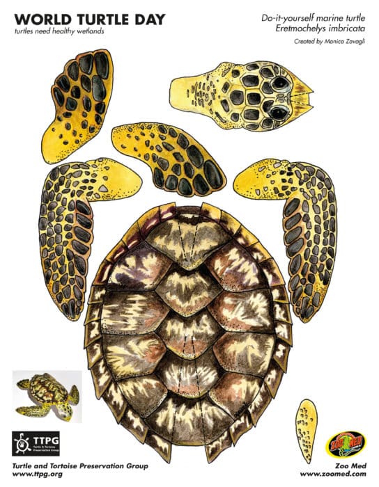 This project works even better with heavier paper, but don’t let that stand in your way. Cut out the pieces and make your own Sea Turtle come to life. You can use round head fasteners if you want it to move after, or you can use glue or tape.