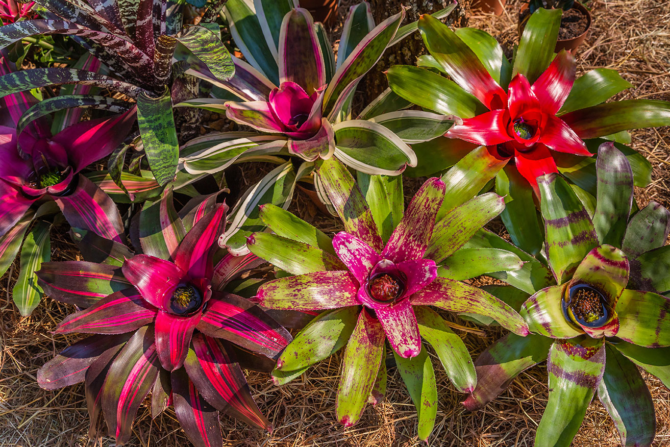 - Bromeliads – a wide variety of colors and textures. Tough leaves provide climbing and cover for small animals. Natural home to small frogs and geckos!
