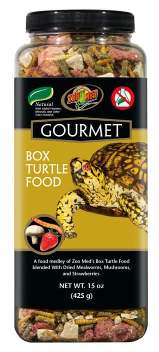 Zoo Medās Gourmet Box Turtle Food adds enrichment to your box turtleās diet with the addition of dried mealworms, mushrooms, and strawberries!Ā