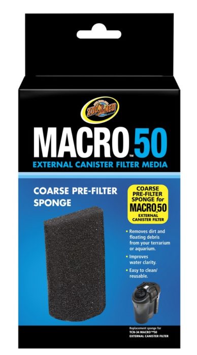 Zoo Med’s Coarse Pre-Filter Sponge is the first line of defense in removing dirt and floating debris from your terrarium or aquarium. Although filters are used to keep your water clean and safe, Zoo Med also recommends weekly water changes of at least 20%. When adding tap water (during a water change) make sure you add Zoo Med’s ReptiSafe® to remove chlorine and chloramines.