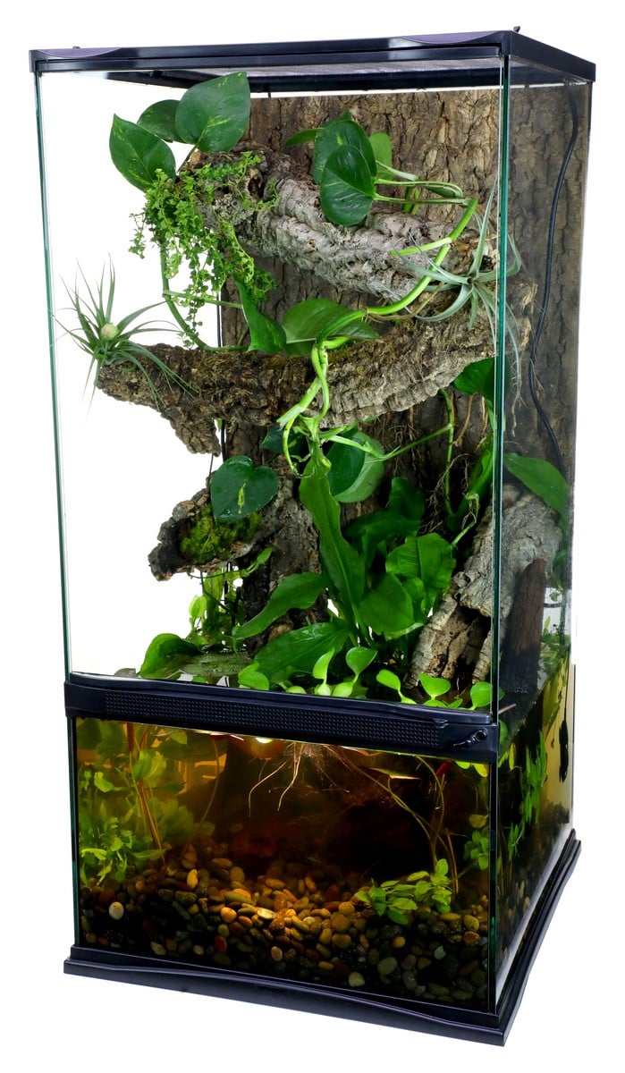 What if you could have a terrarium and aquarium all in one enclosure? Something for your reptiles, plants, and fish? Well now you can, with our brand new Paludariums! Build a dream home for your pets in one of the two sizes available: 12” x 12” x 24” Paludarium with a 4 gallon water feature, or our larger 18” x 18” x 36” Paludarium with a 10 gallon water feature.