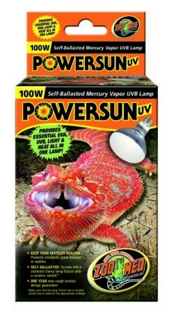 The PowerSun® UV is a self-ballasted mercury vapor lamp which emits UVA, UVB, and heat all in one lamp! Fits into a standard ceramic socket (No ballast needed). The 160 Watt projects UVB up to several feet from the lamps surface and is ideal for large terrariums or bird aviaries. Features include quality nickel-plated threads to prevent corrosion, and a full one year warranty!