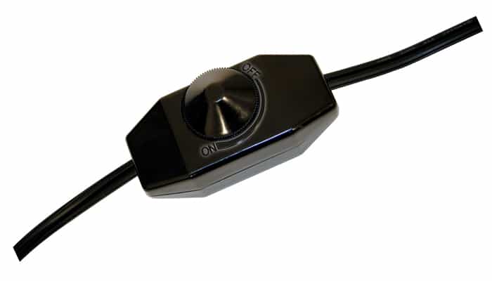 The perfect, all-in-one solution for controlling heat lamps. Inline dimmer switch allows you to adjust from off to full power and anything in between. Heavy duty ceramic fixtures can handle up to 150 watts. Turn heaters down on a hot day and back up in the evening, change temperatures seasonally without changing bulbs, or just improve lamp life by running them at lower power.