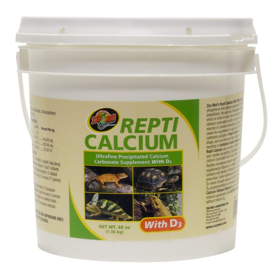 Repti Calcium® is an ultra-fine Precipitated Calcium Carbonate Supplement with Vitamin D3. It is a phosphorus-free calcium supplement for reptiles and amphibians. It has a unique shape/high surface area per gram resulting in increased calcium bio-availability.