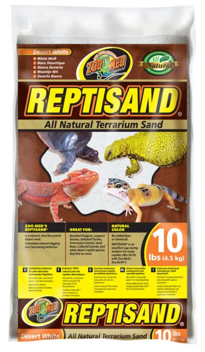 ReptiSand® Desert White and Natural Red are natural sand colors with no added dyes or chemicals. It stimulates natural digging and burrowing behavior and is an excellent heat conductor. ReptiSand® creates a very naturalistic and attractive environment for desert reptile species. Great for Bearded Dragons, Sand Boas, soft-shell turtles, etc.