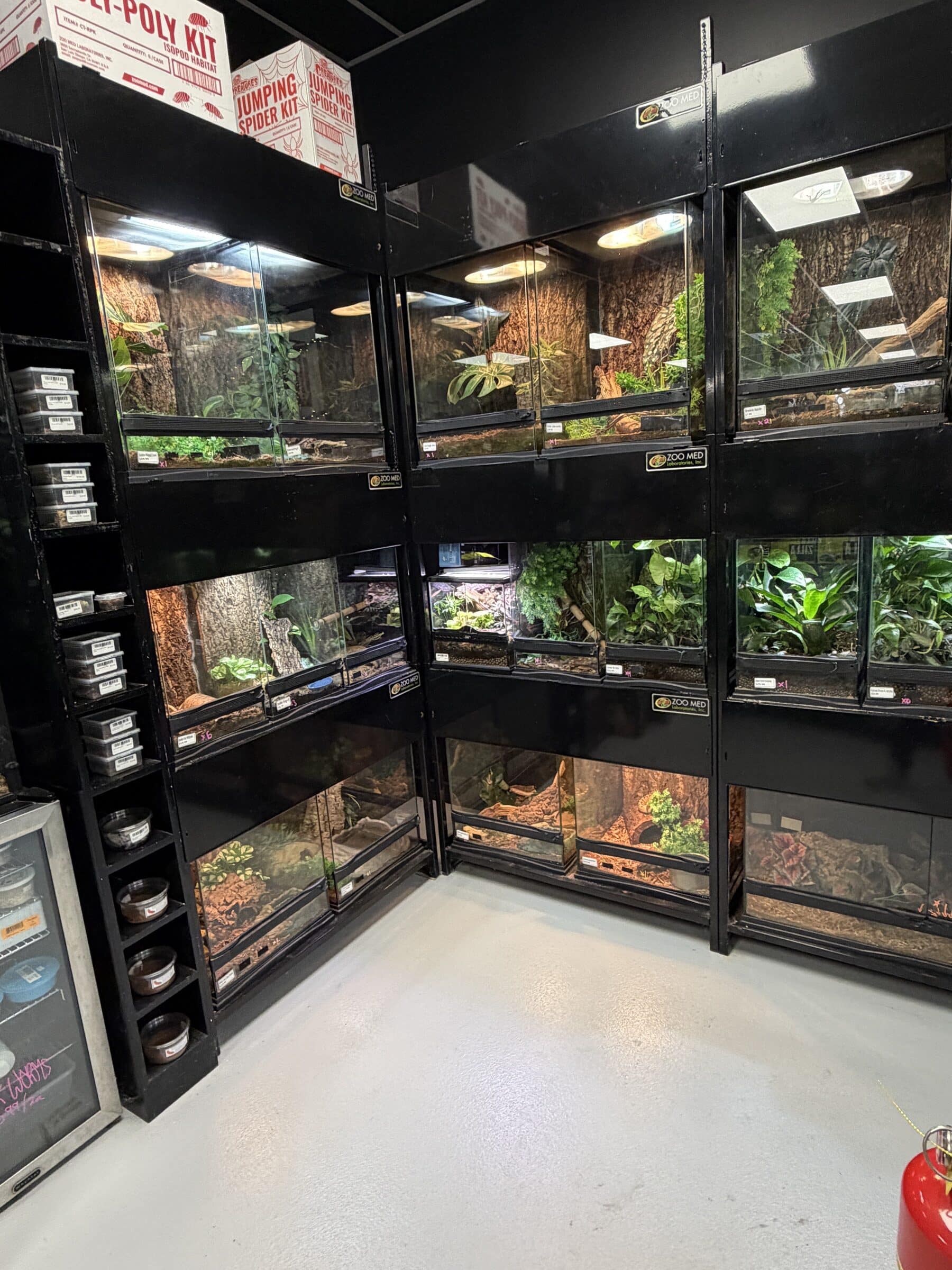 When it comes to his personal favorites, Mike has a deep love for smaller tropical reptiles and amphibians, with a particular passion for dart frogs and pygmy chameleons. On the trends front, jumping spiders have exploded in popularity recently, and the team has loved every minute of it. Even more exciting has been watching the hobby mature, with more and more enthusiasts prioritizing proper animal care and education.