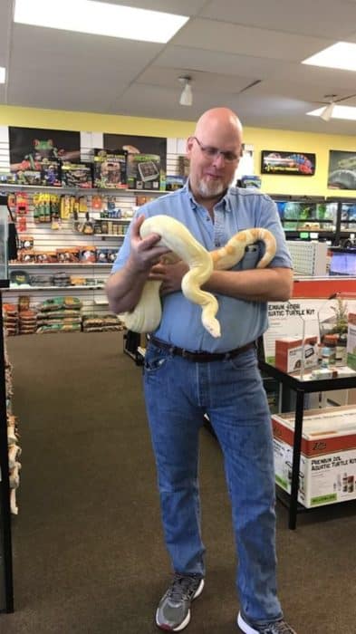 They’ve found that many of their reptile customers come to them for the bigger selection of products that they have stocked, and for the extra knowledge they can provide. Jeff and Shanonn keep many reptiles as pets, with 3 Adult Redfoot Tortoises as store mascots that they have free roam the store time-to-time. In the back of the store, they have a small breeding room, where they keep over 50 snakes for breeding. Not the most common ones either, expect to see Royal Diadem Ratsnakes, Baron’s Racers, Stillwater Bullsnakes, Licorice Ratsnakes, and a few other unusual species.