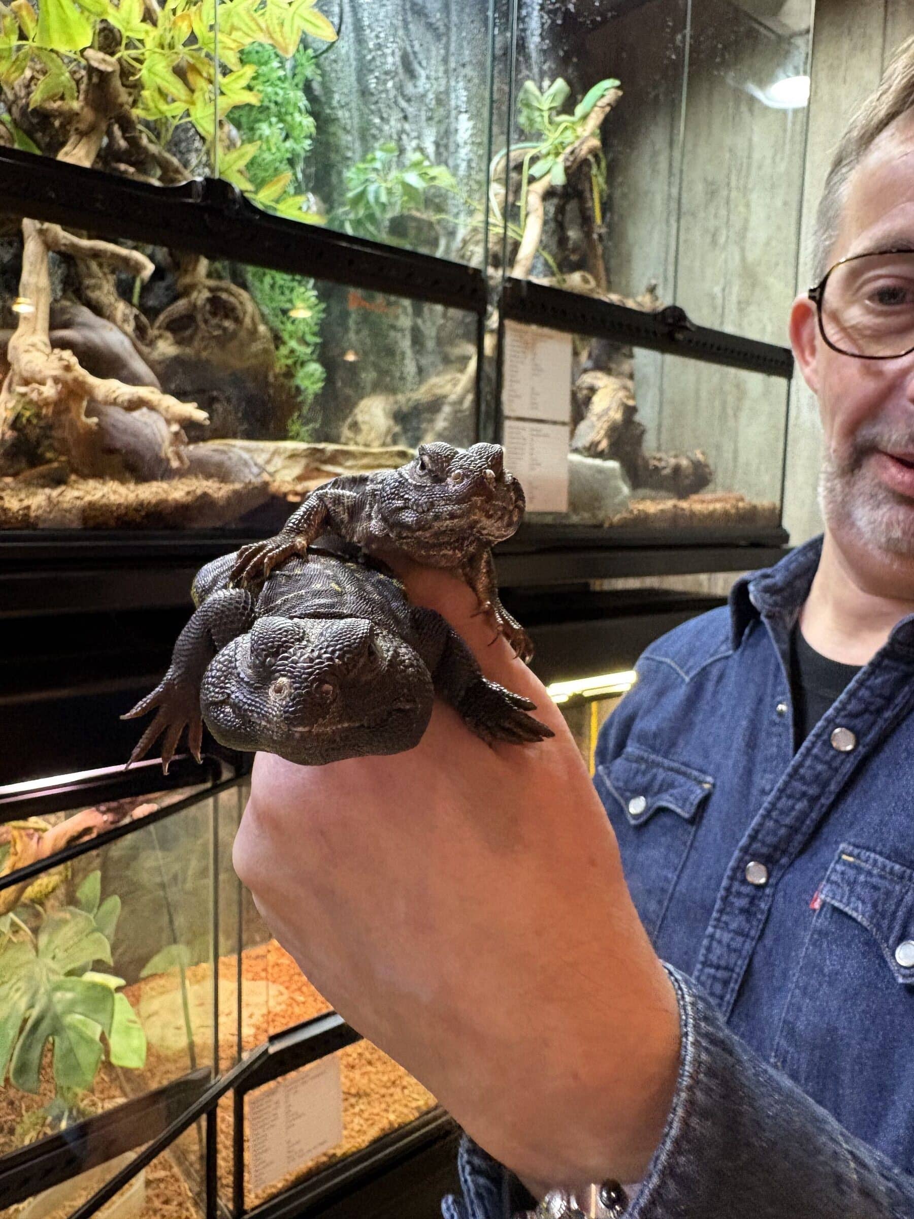 In the store, they keep a variety of reptiles, amphibians, and insects, including several rare species. Barbara especially loves blue tongue skinks, Uromastyx, and Greek tortoises, while Danny has a fondness for snakes. They also breed their own Greek tortoises in-store. Danny and Barbara are seeing increased popularity in bioactive habitats, and also popularity with anole species.