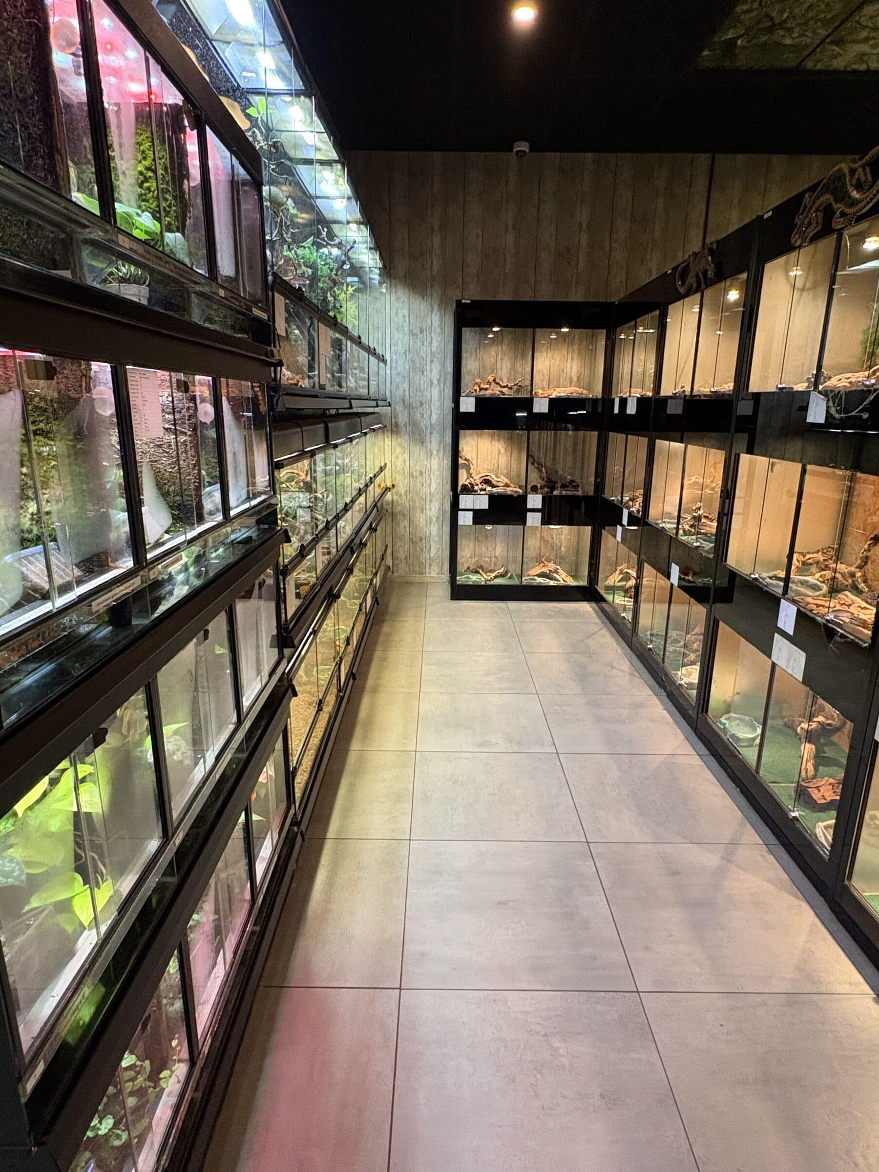 Unlike American stores, this store operates with a staff of 5 rotating college students who are studying animals in school. They stay for a year each to work at the store before returning to school. In addition to working with local universities, Anaconda Reptiles works with the Antwerpen ZOO.