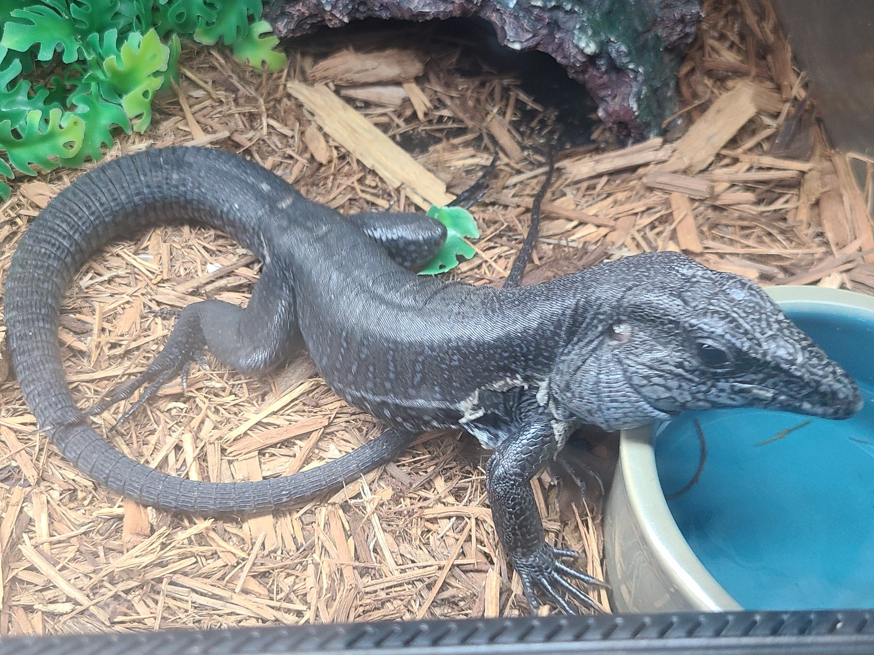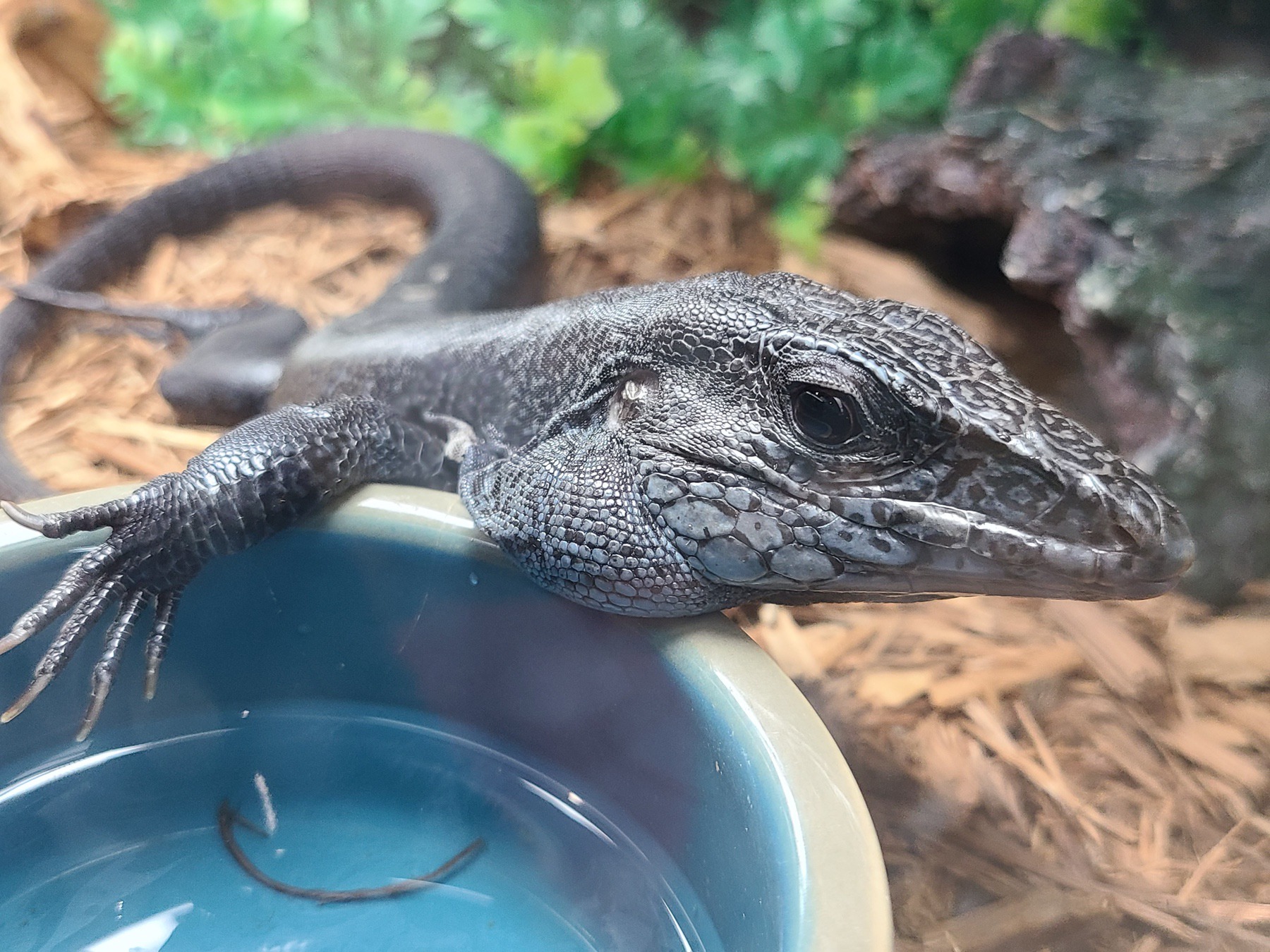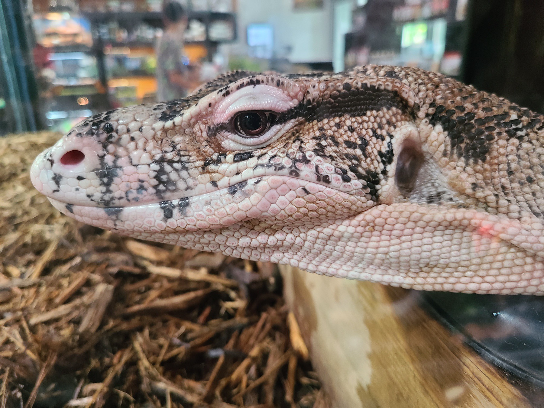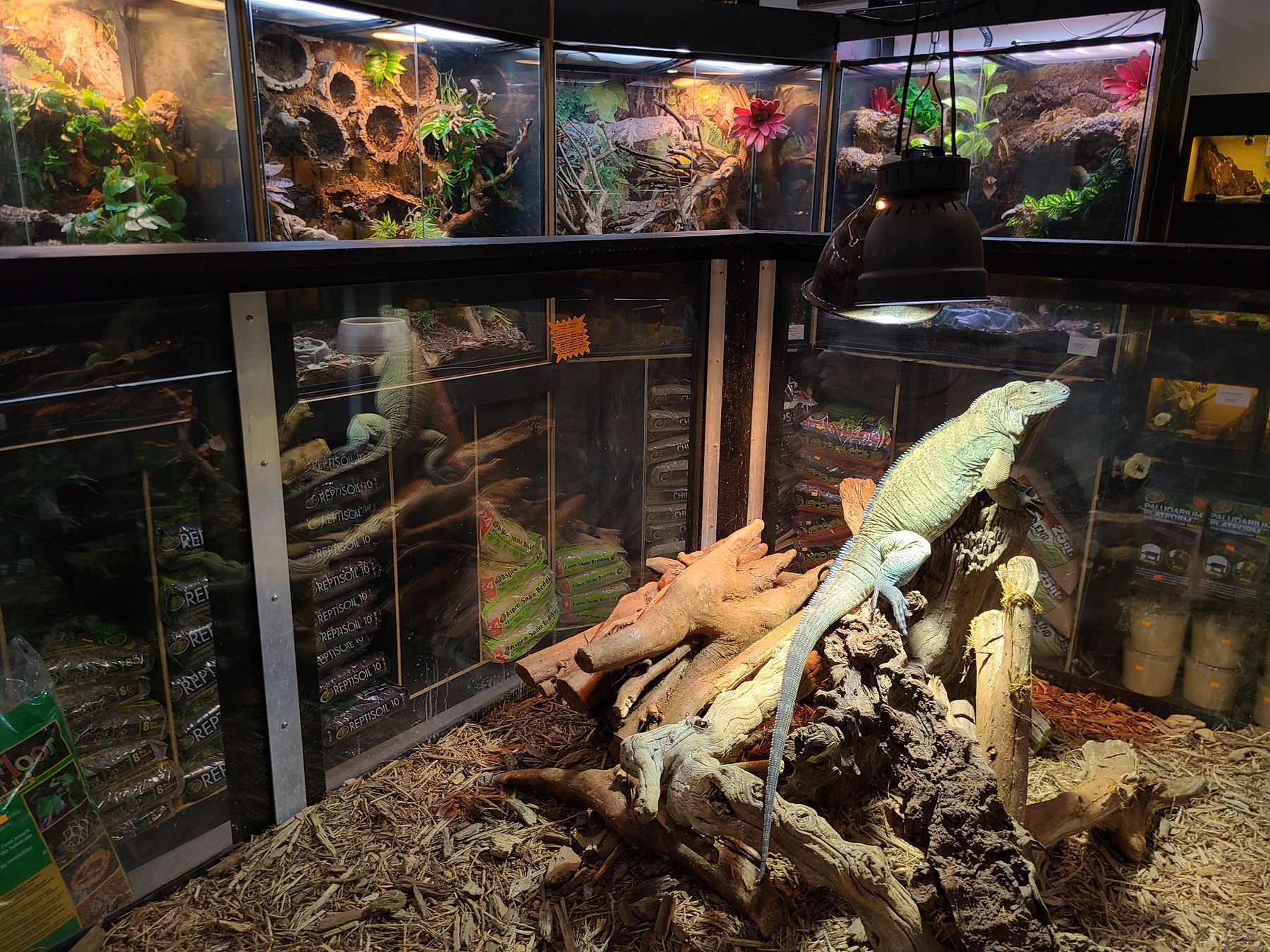 They have several store pets too like a rhino iguana named Cleo, a water monitor named Max,and a melanistic Amieva Lizard.