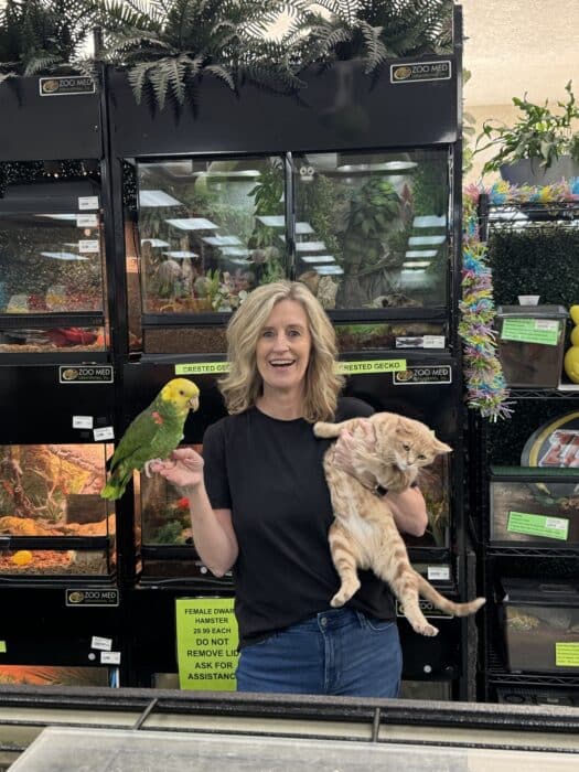 My personal connection to animals started early. I grew up with pets, but cats were always my favorite. Their independence, curiosity, and unique personalities drew me in, and there is something special about earning a cat’s trust and watching their traits emerge over time. Even as a child, I felt a strong sense of responsibility toward the animals in my care, and that feeling never left. Today, in addition to running the store, we operate a year‑round cat rescue and adopt out cats and kittens. We also have four store cats that roam freely and happily interact with customers, making it feel very full circle to still have cats at the heart of what we do.