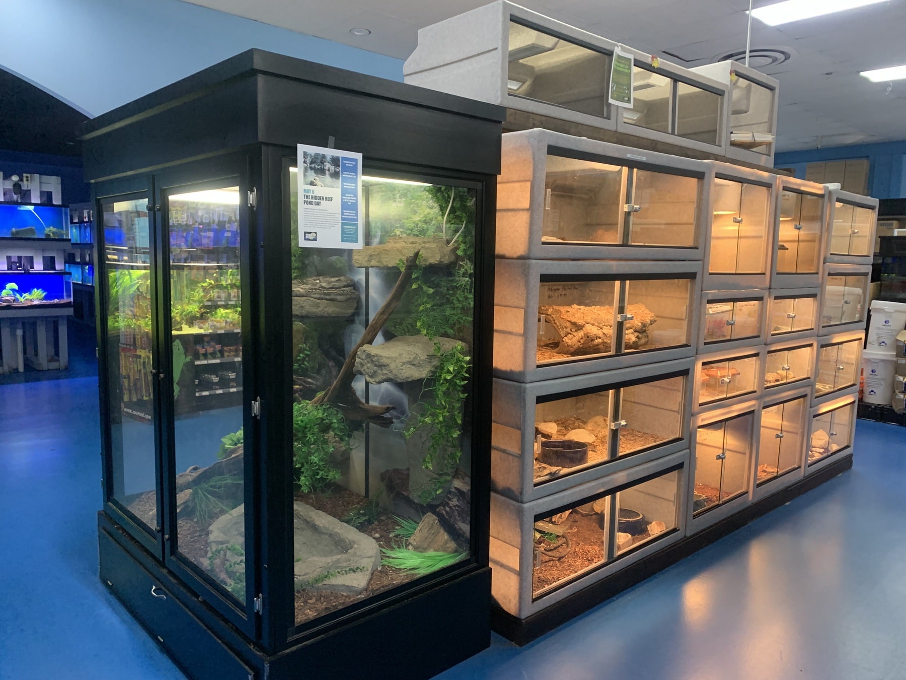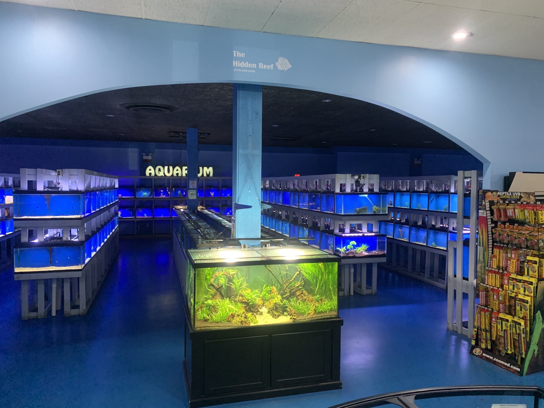 The modern-day store is over 20,000 square feet. Of this, 6800 square feet is home to 450-plus aquariums. Out of these, 40 are devoted to corals, 145 are saltwater, and more than 250 are freshwater. To give you an idea of the size of the store it was originally a supermarket and then a ballroom before becoming the Hidden Reef.