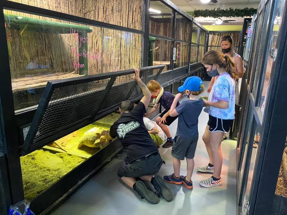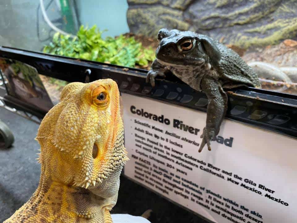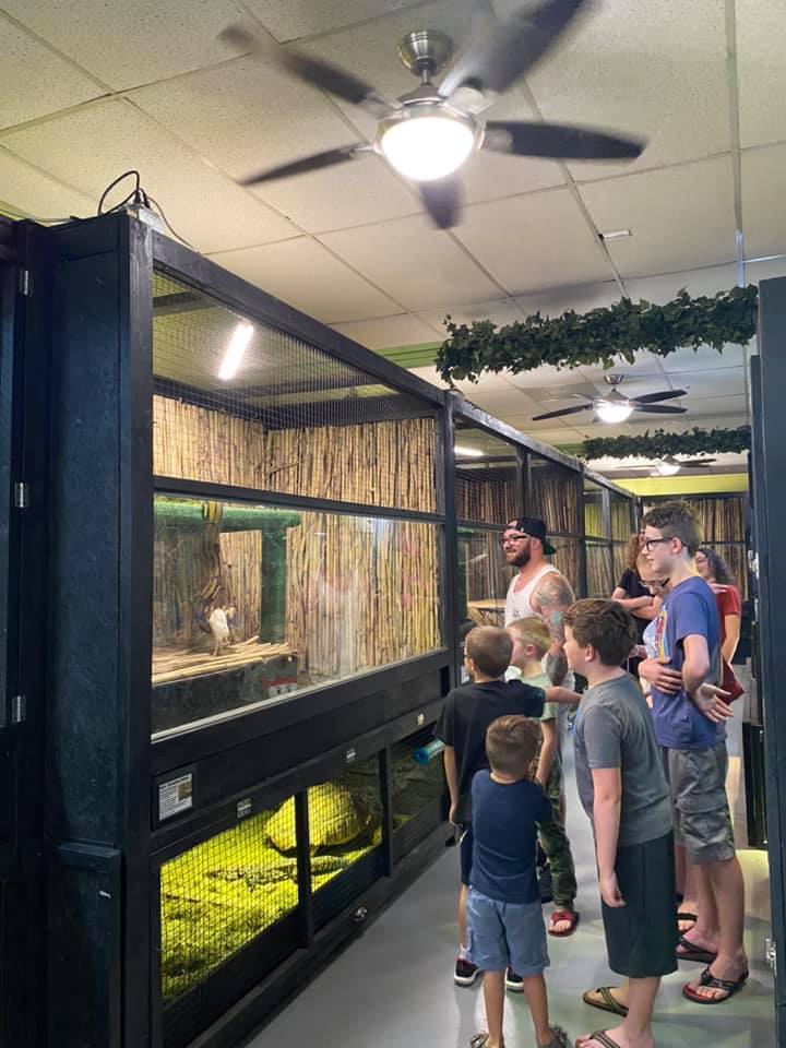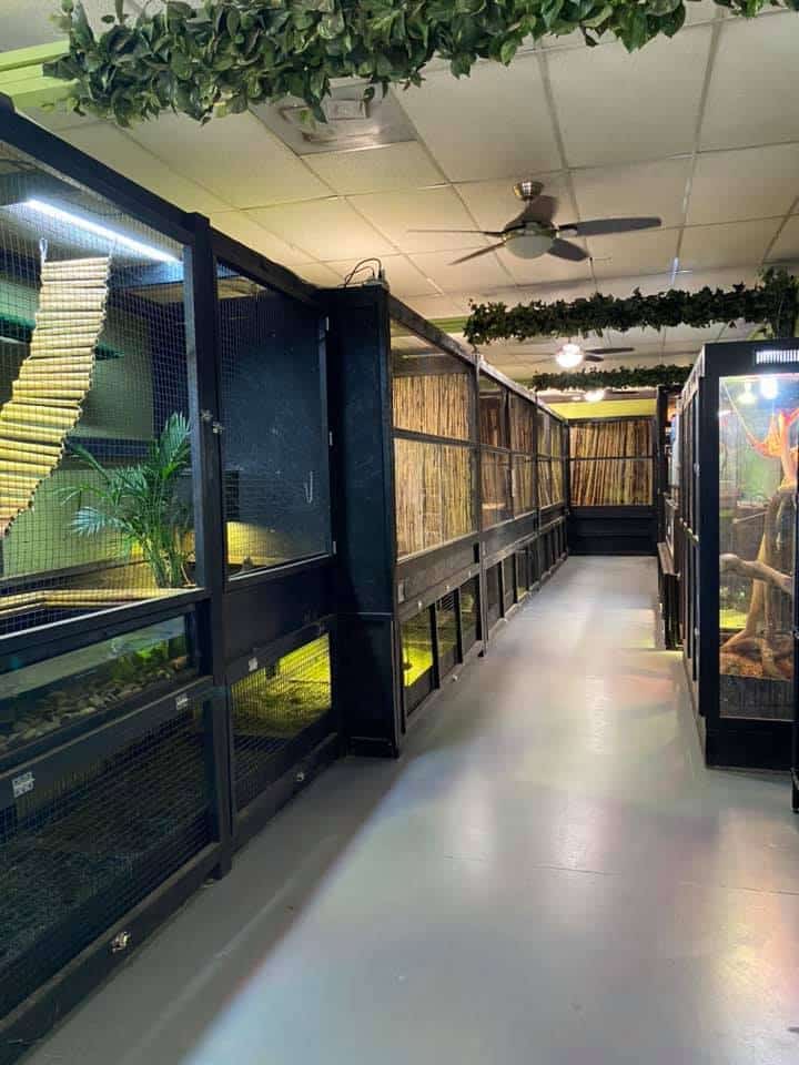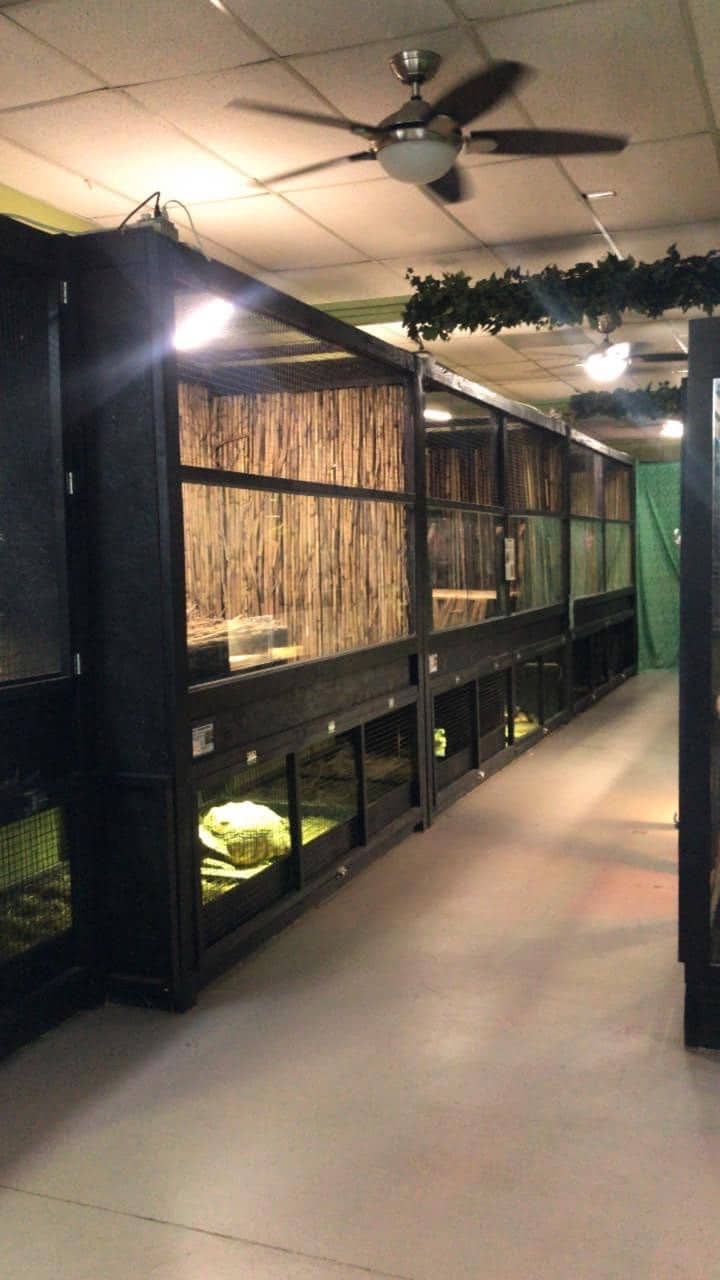 In addition to an entirely reptile focused retail shop, they have a Reptile Exhibit Room that houses over 50 reptiles which were surrendered to them slowly since opening their doors. Some of these “store pets” include anacondas, reticulated pythons, sulcata tortoises, tegus, iguanas, chuckwallas, Asian Water Monitors, caiman lizards, tegus, and more.