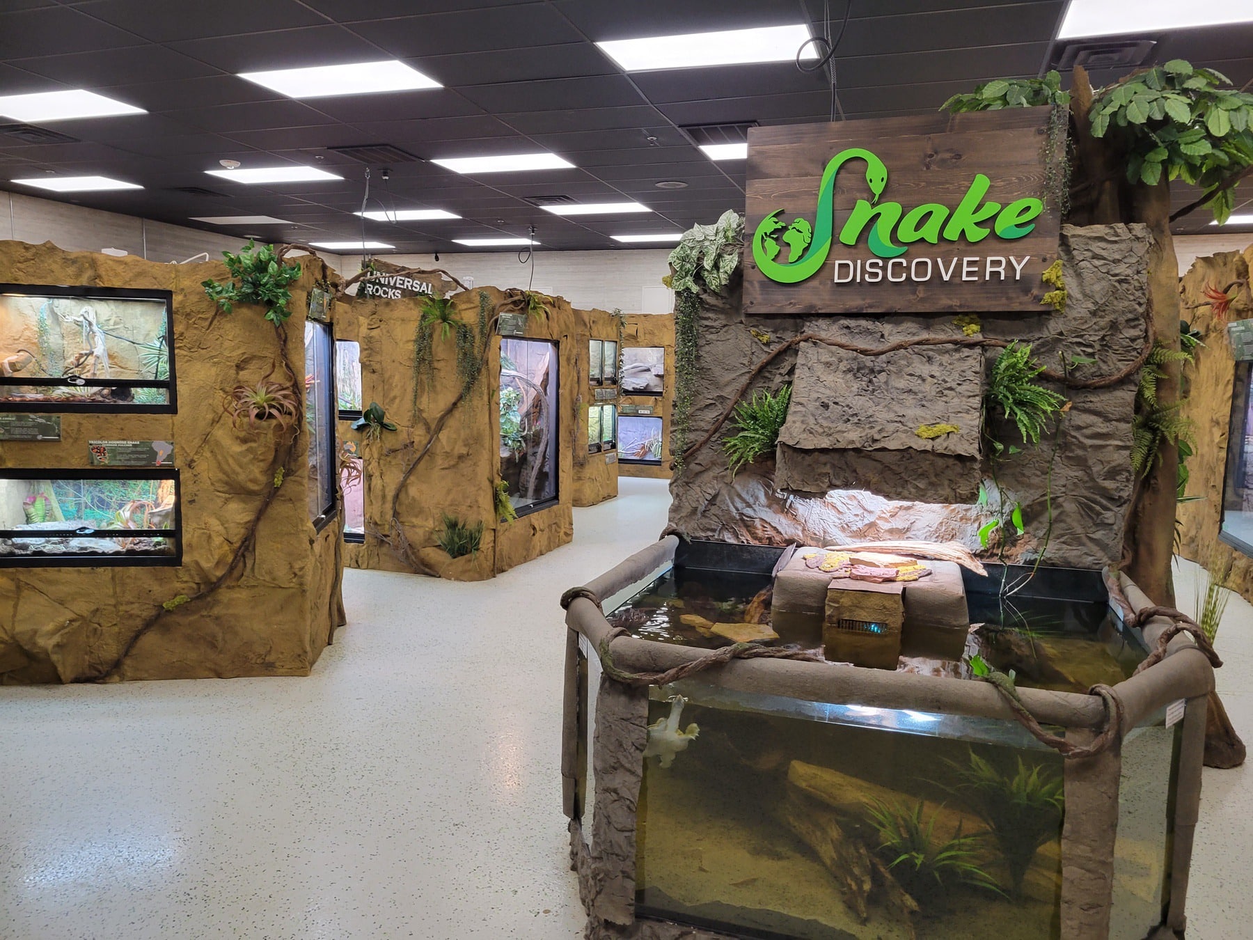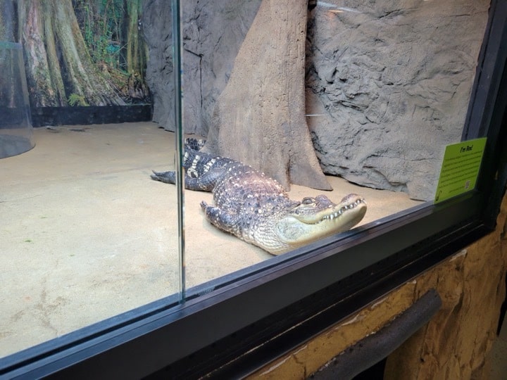 But the stand apart feature at Snake Discovery has to be the built-in reptile zoo. At 4000 sq ft, the zoo features some of Ed and Emily’s long kept pets, as well as a mix of reptiles from across the world, while also putting a focus on local animals from the upper Midwest. In the zoo you can see exhibits that feature everything from tree frogs, to geckos, to boas and pythons, and most notably their well-known ambassador animal Rex. Rex is a 35-year-old American Alligator that spent the first 27 years of her life in a 4’ wooden box before making her way to Snake Discovery. At a length of just 4.5’ as an adult, and still holding her baby stripes, Rex is not only a sign of what not to do with an animal, but also the importance of rescue work.