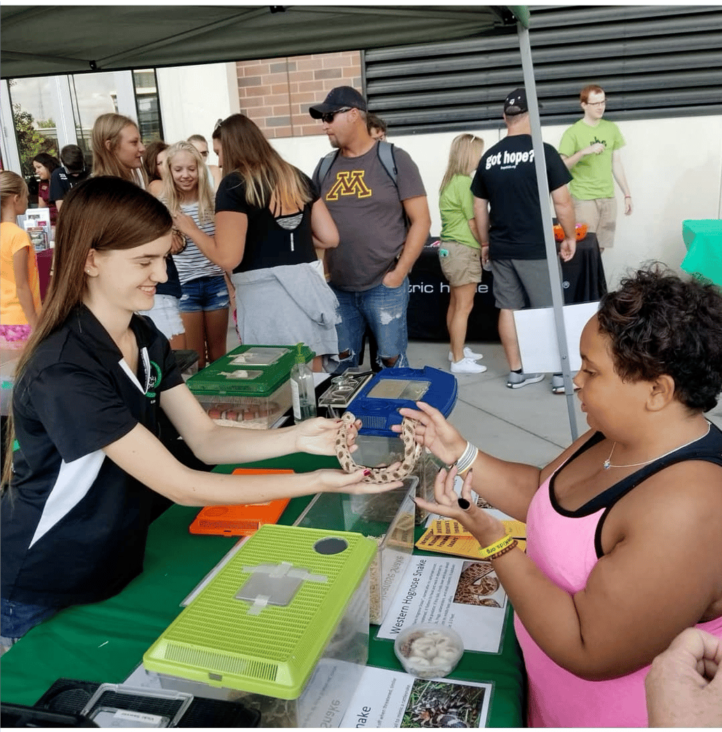 While Snake Discovery the store has only been open since the beginning of 2021, they have been making an impact on the reptile world for long time. Owner Ed and Emily Roberts originally met when Ed came into the store Emily was working at to buy a pet bird. From there they quickly became involved with the Minnesota Herp Society and their educational live animal shows. They then took their own shows on the road, doing shows across Minnesota and Wisconsin, and turned the in person show into a thriving YouTube show as well. Still, they knew they wanted to eventually open a brick and mortar store and provide even more for the local community. In 2020 they began building their vision which includes a 3000 sq ft store front, a breeding facility, a classroom and a 4000 sq ft zoo.