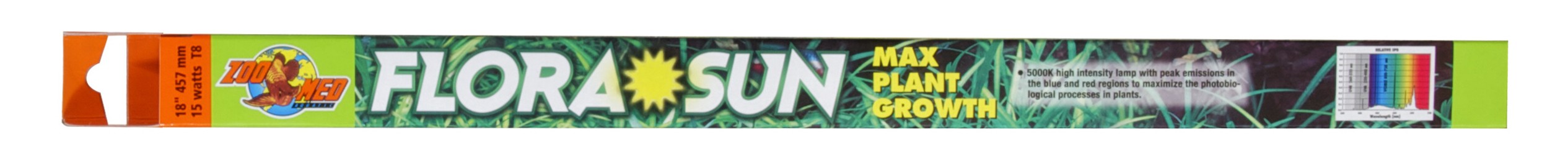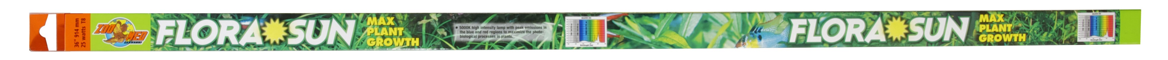 This high intensity lamp with peak emissions in the blue and red regions serves to maximize the photo biological processes in plants. The emission spectrum closely resembles the absorption curve of chlorophyll-A, promoting maximum photosynthesis, ideal for planted aquariums, or terrariums. Also great for shy fish species such as Dwarf Cichlids, discus, etc. Use in conjunction with Ultra Sun® or Tropic Sun®. Zoo Med’s line of fluorescent aquarium lamps are made in Europe for ultra high quality, color, and longer burn life. Our energy saving T8 sizes can save you up to $30.00 per year in electricity over the thicker T12 size lamps! Effective up to 10,000 hours.