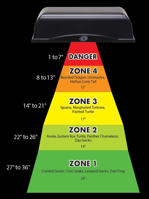 This UVB/LED lamp must be positioned a minimum of 8″ away from your animal.